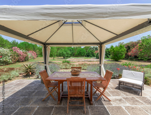 Gazebo In Giardino Con Tavolo E Sedie Buy This Stock Photo And