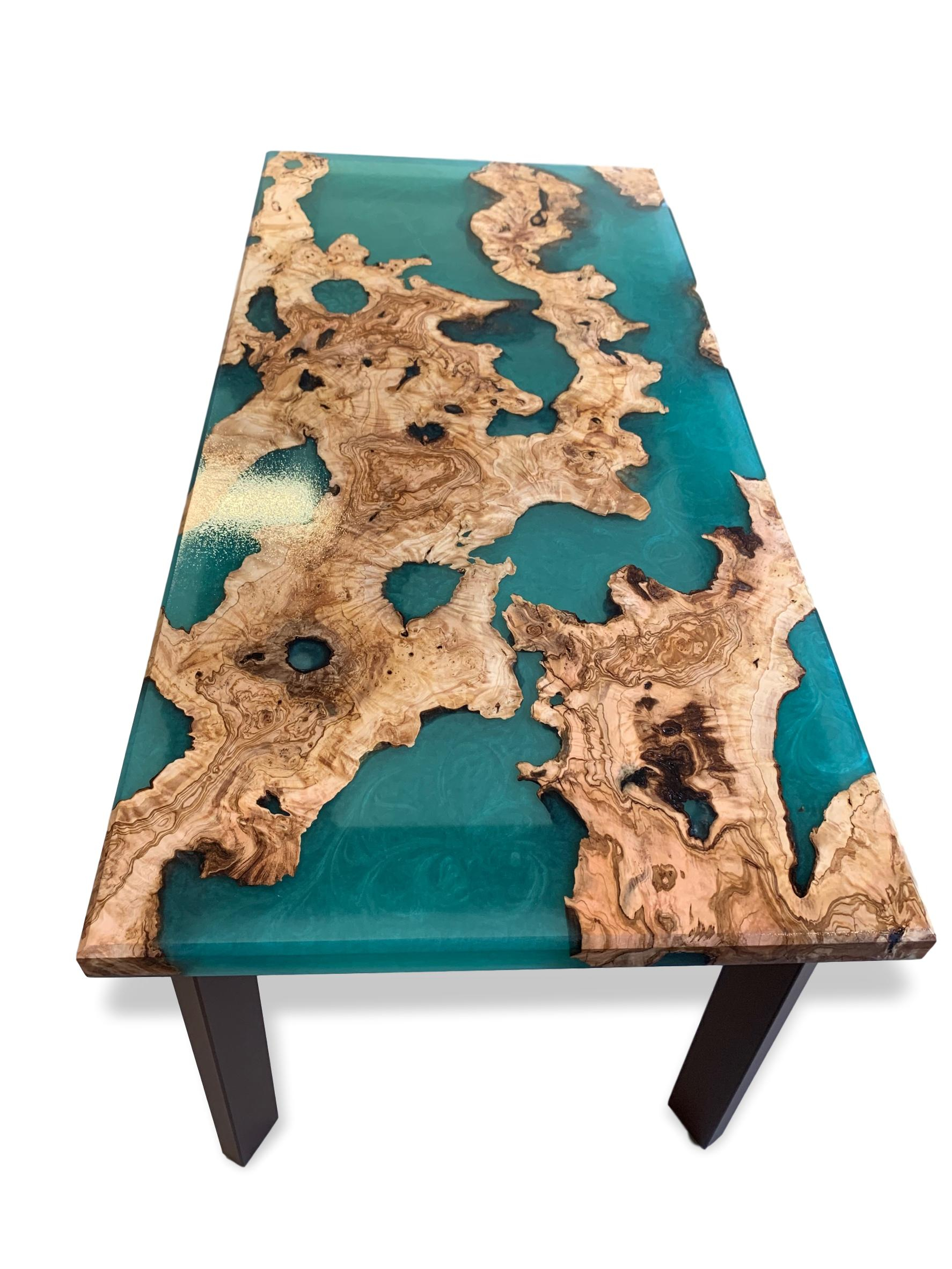 Tavolo In Resina Trasparente Con Legno Di Olivo Un Design Unico E