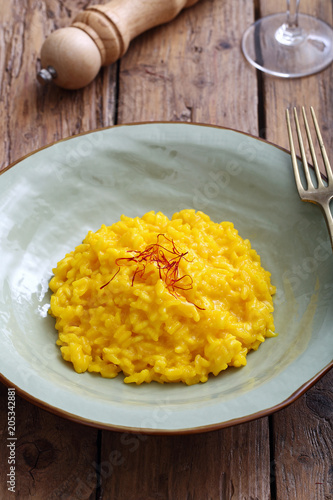 Risotto Allo Zafferano Tradizionale Italiano Su Sfondo Tavolo Di